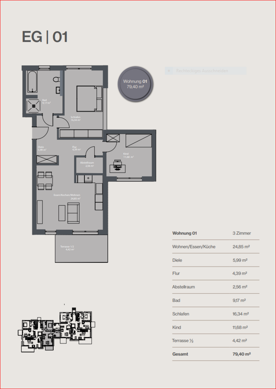 - Wohnfläche gesamt: 1.015m² (zwischen 48m² und 94m²)
